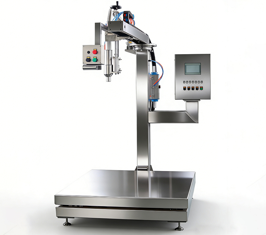 本灌装系统采用自动化控制技术,实现高效、精准的四桶(每桶50加仑)连续灌装作业。操作时,叉车将桶体定位至称重平台,操作人员通过手柄快速对准桶口并锁定灌枪;启动后,系统自动完成去皮、三段式(大流量、小流量、微量)定量灌装、液面跟踪提升及灌装终点自动关闭等全过程,确保灌装精度与安全性,显著提升作业效率与一致性。